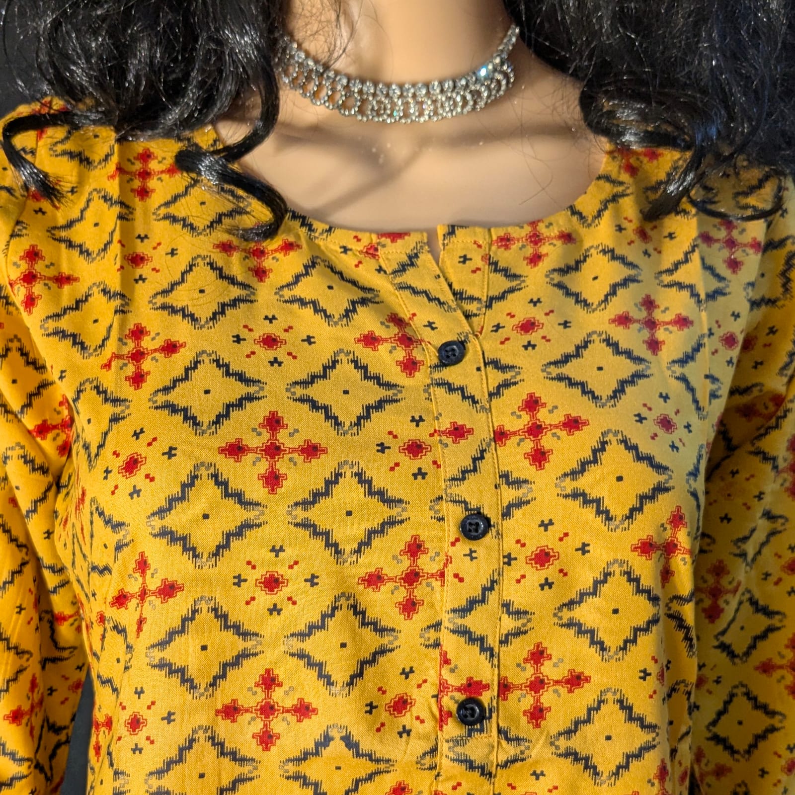 Color : Bright yellow with simple printed designs.