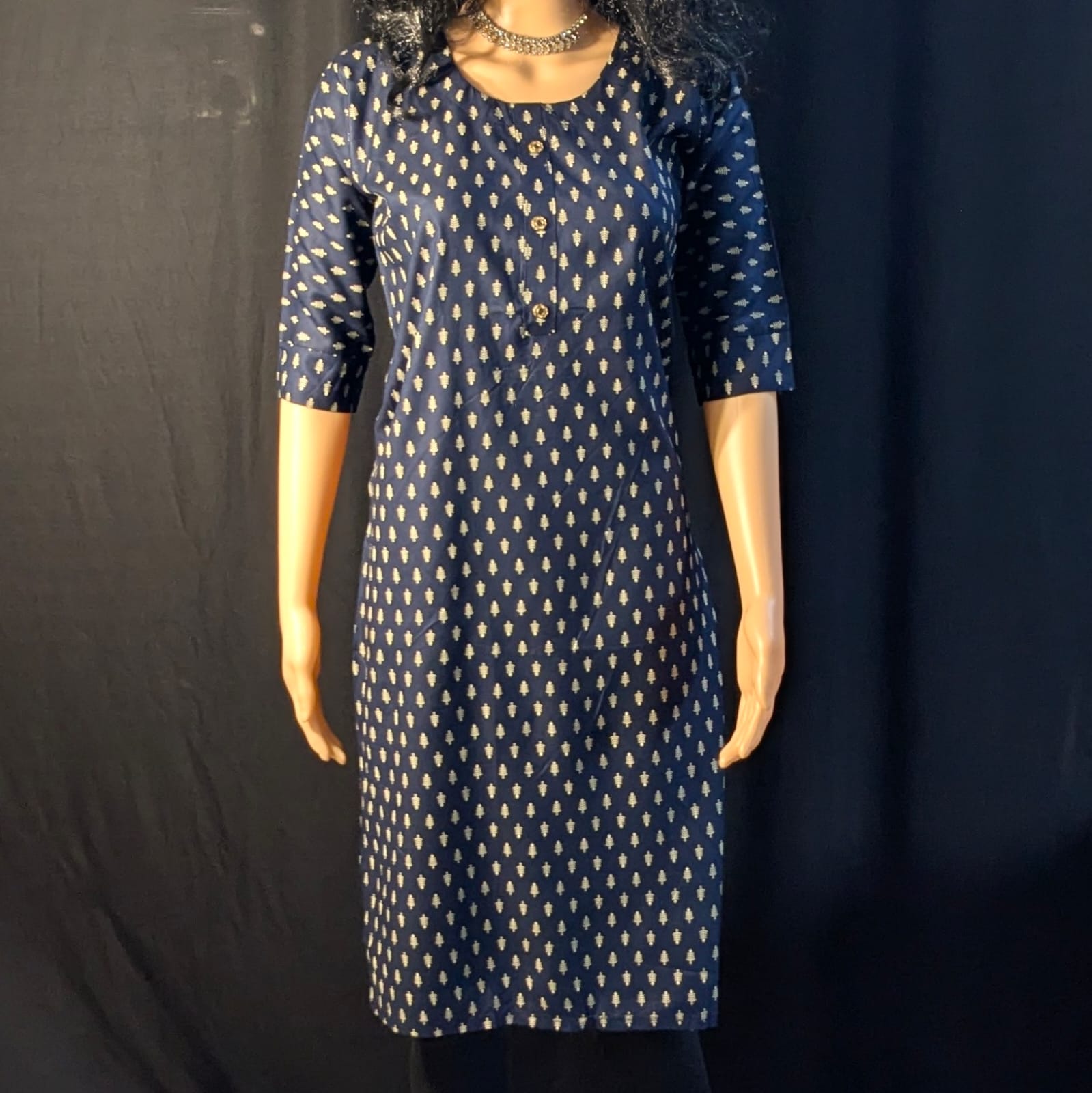 Add timeless ethnic elegance to your wardrobe with this dark blue straight-cut kurti, designed for women who appreciate comfort with subtle style. Crafted from soft, breathable fabric, this kurti features a clean straight silhouette that flatters all body types and ensures ease of movement throughout the day. The simple neck design keeps the look minimal and versatile, making it suitable for office wear, casual outings, or daily use.