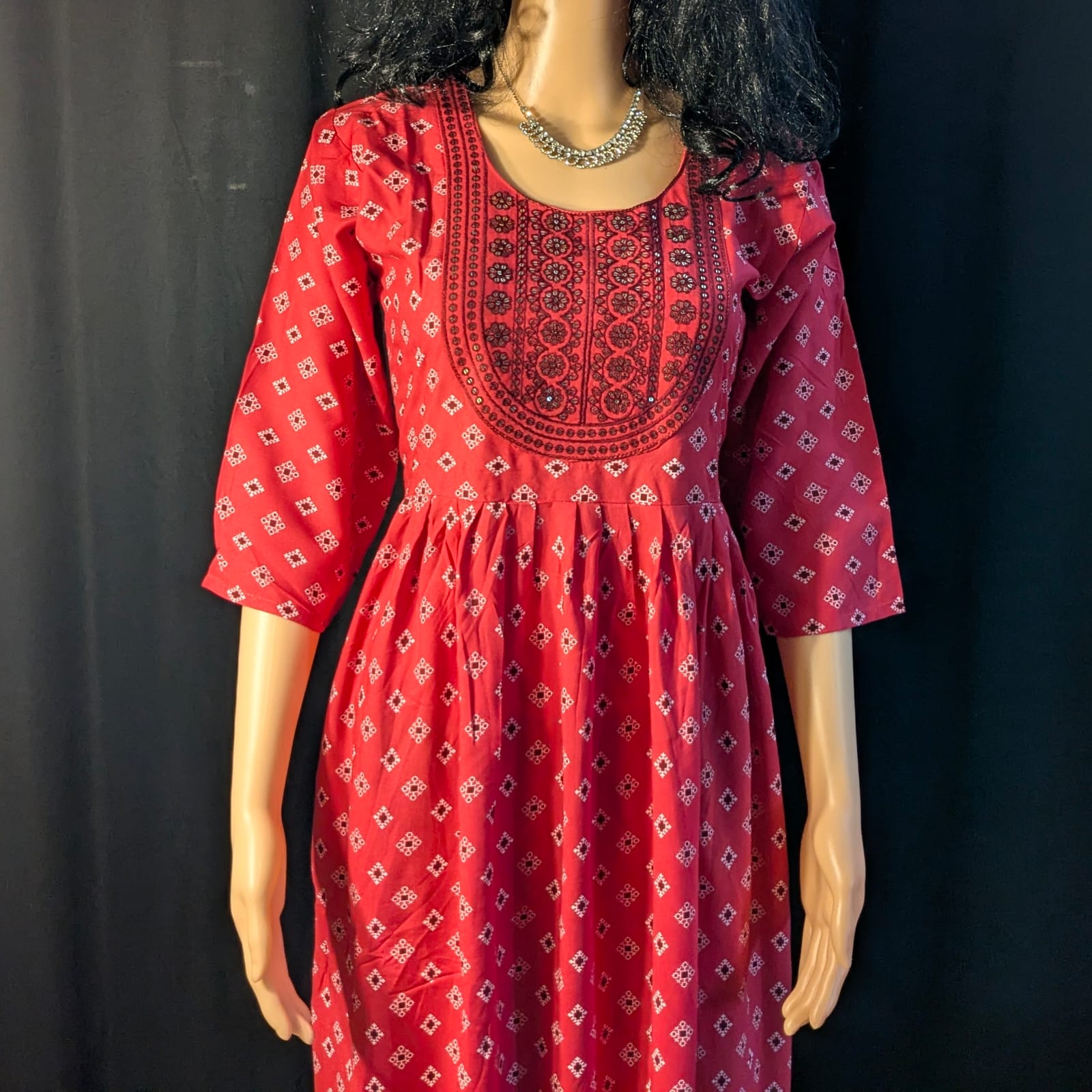 Step into elegance with our Dark Pink Umbrella-Model Kurti, designed to combine style, comfort, and festive charm. Made from soft, breathable fabric, this kurti features a graceful umbrella flare that drapes beautifully, flattering every silhouette. The chamki neck design adds a touch of shimmer, making it perfect for small functions, festive gatherings, or evening outings.