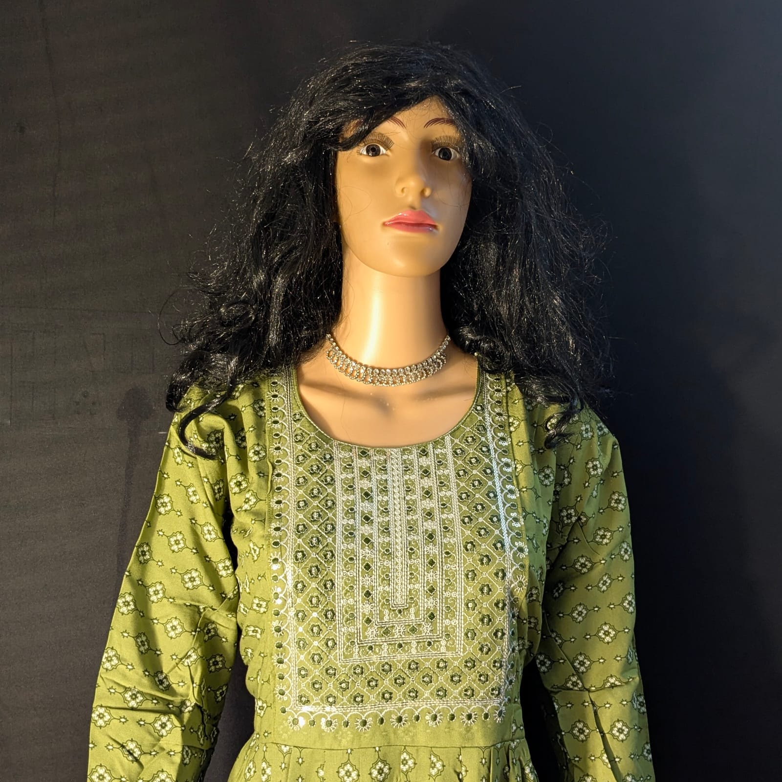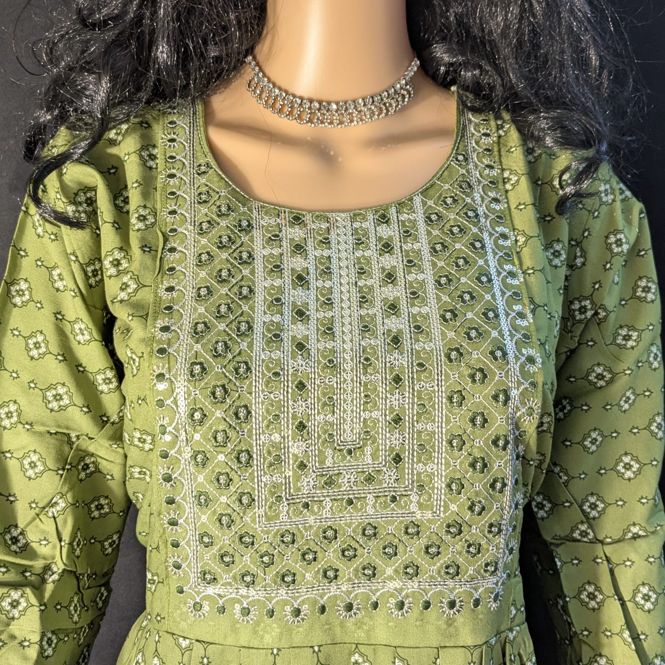Color : Elegant green with delicate chamki neck detailing for a festive look.