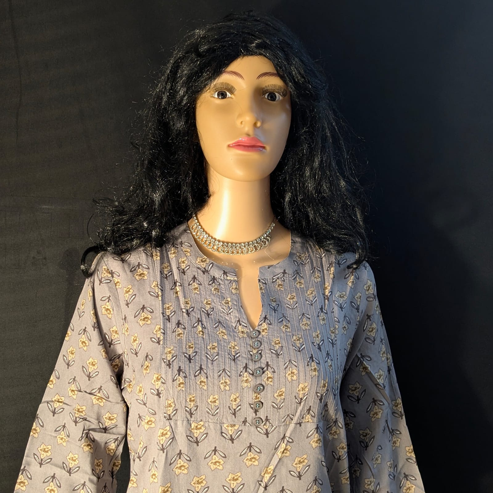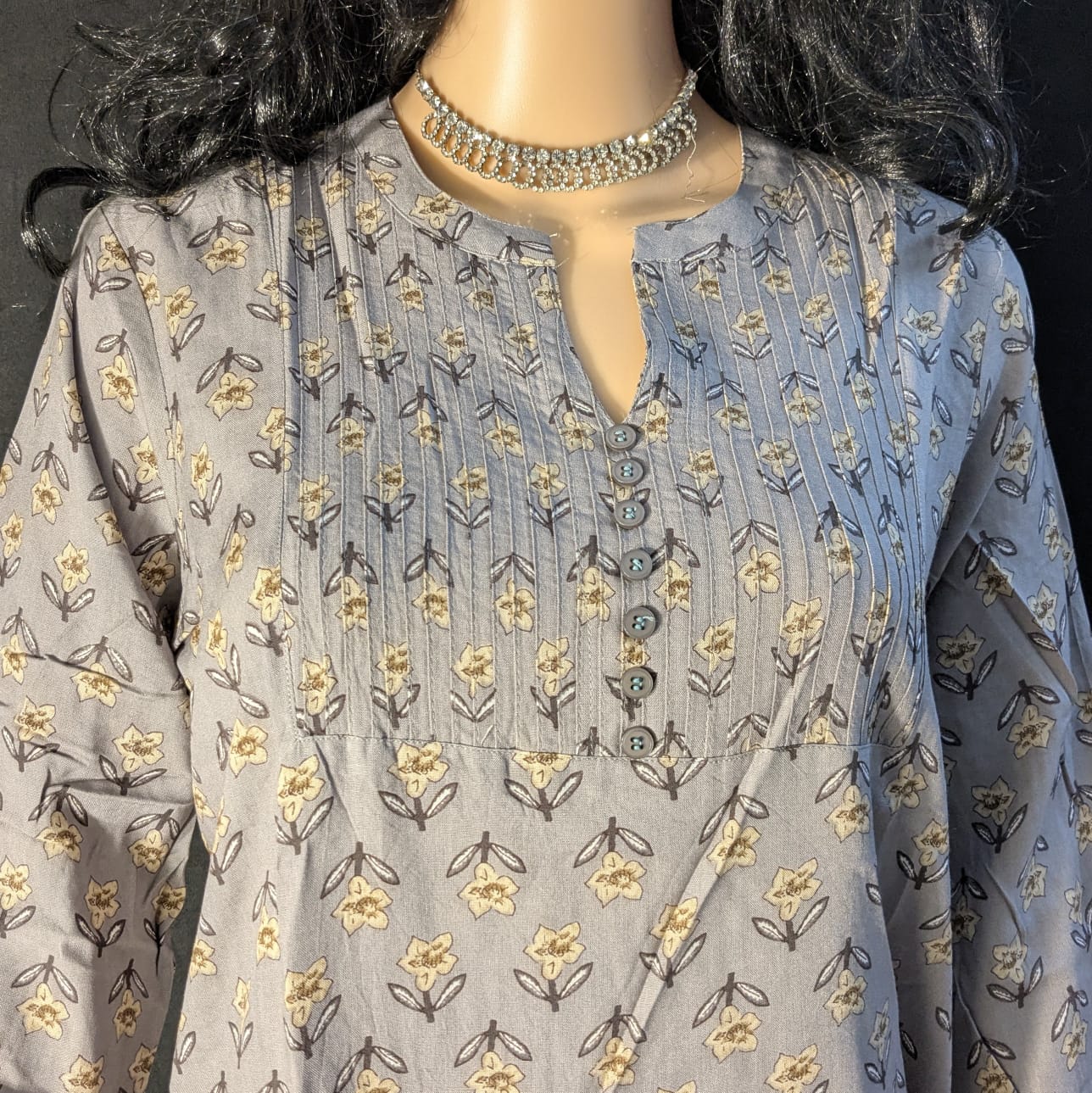 Color & Print : Elegant grey color with small floral print for a timeless, graceful look.