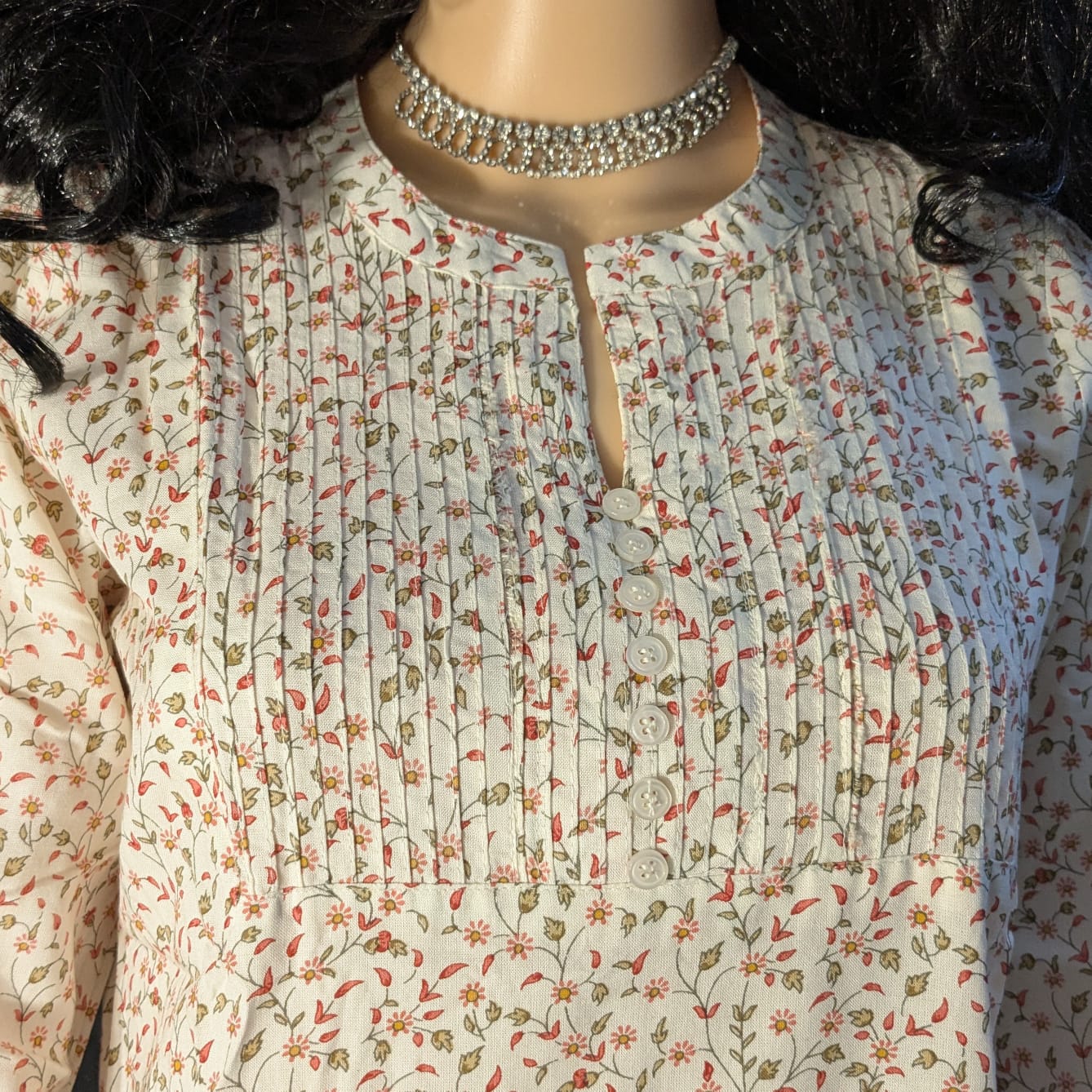 The straight yet relaxed fit enhances comfort without compromising on style. Featuring a smart neckline and 3/4th sleeves, this floral short kurti is perfect for women who love to blend traditional elegance with modern simplicity. Whether you’re heading out for a casual brunch or a workday, this tunic-style kurti ensures you look effortlessly stylish and confident.