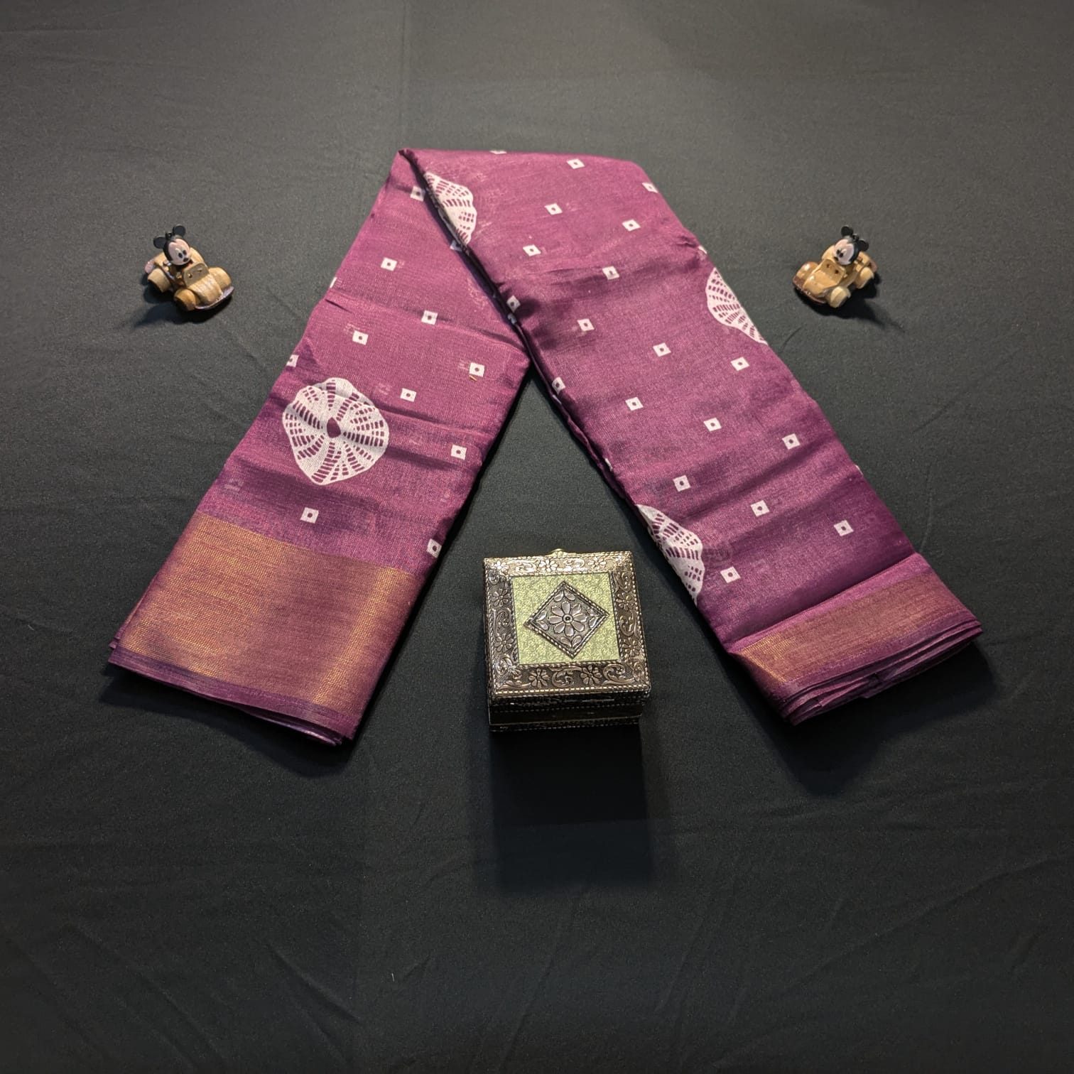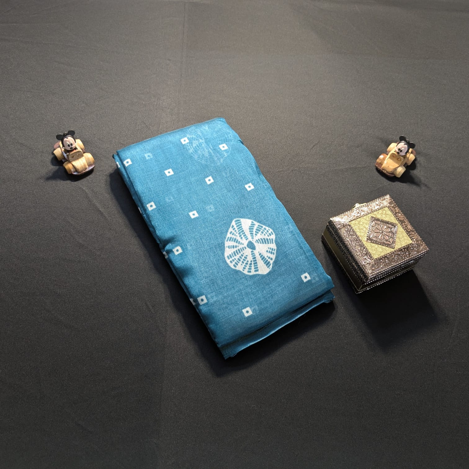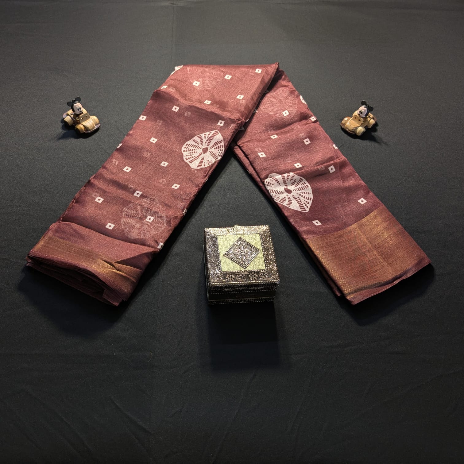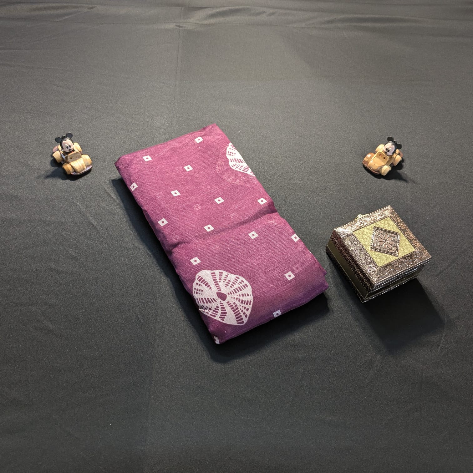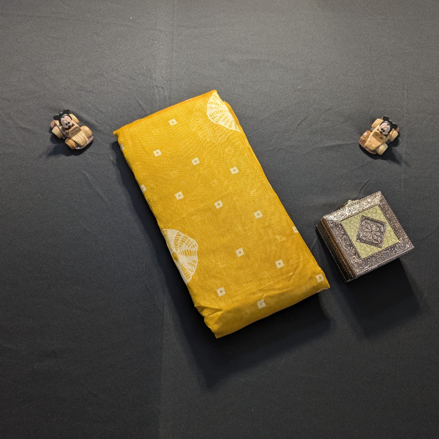 Add a touch of timeless elegance to your wardrobe with this vibrant jute saree, adorned with unique bandhini designs and a luxurious golden border. Crafted from premium quality jute fabric, this saree is lightweight, breathable, and comfortable, making it ideal for office wear, casual outings, and semi-formal occasions.