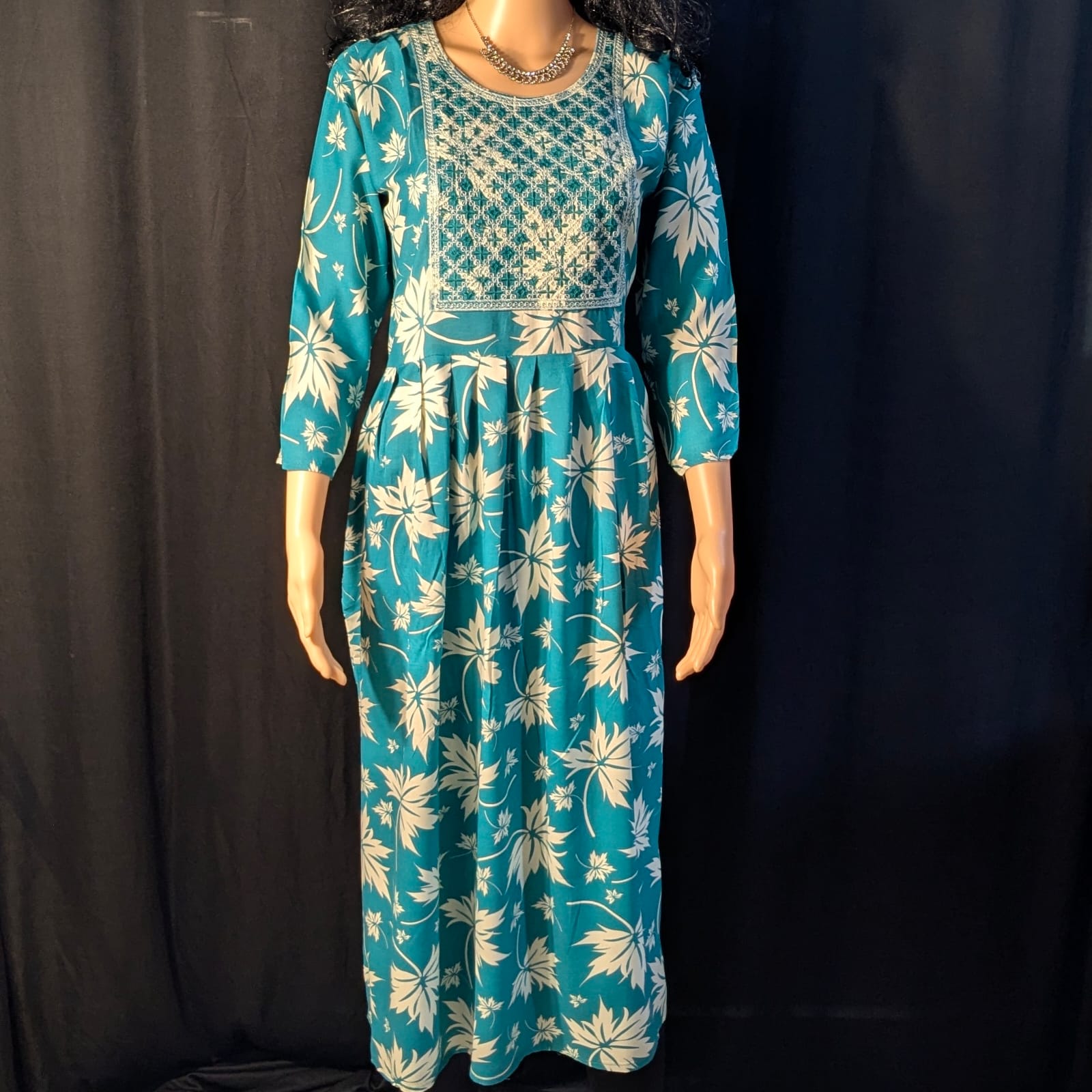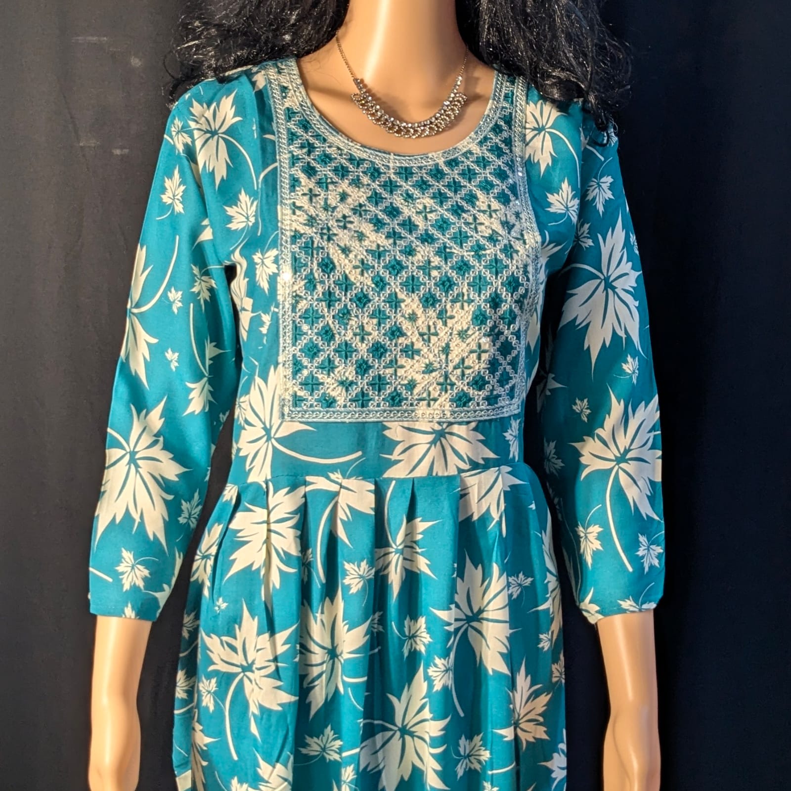 Refresh your ethnic wardrobe with this teal green umbrella kurti, designed to combine graceful style with everyday comfort. Crafted from soft, breathable fabric, this kurti features a beautifully flared umbrella silhouette that offers a flattering drape and ease of movement. The simple neck design adds a clean and versatile touch, making it suitable for office wear, casual outings, or daily styling.