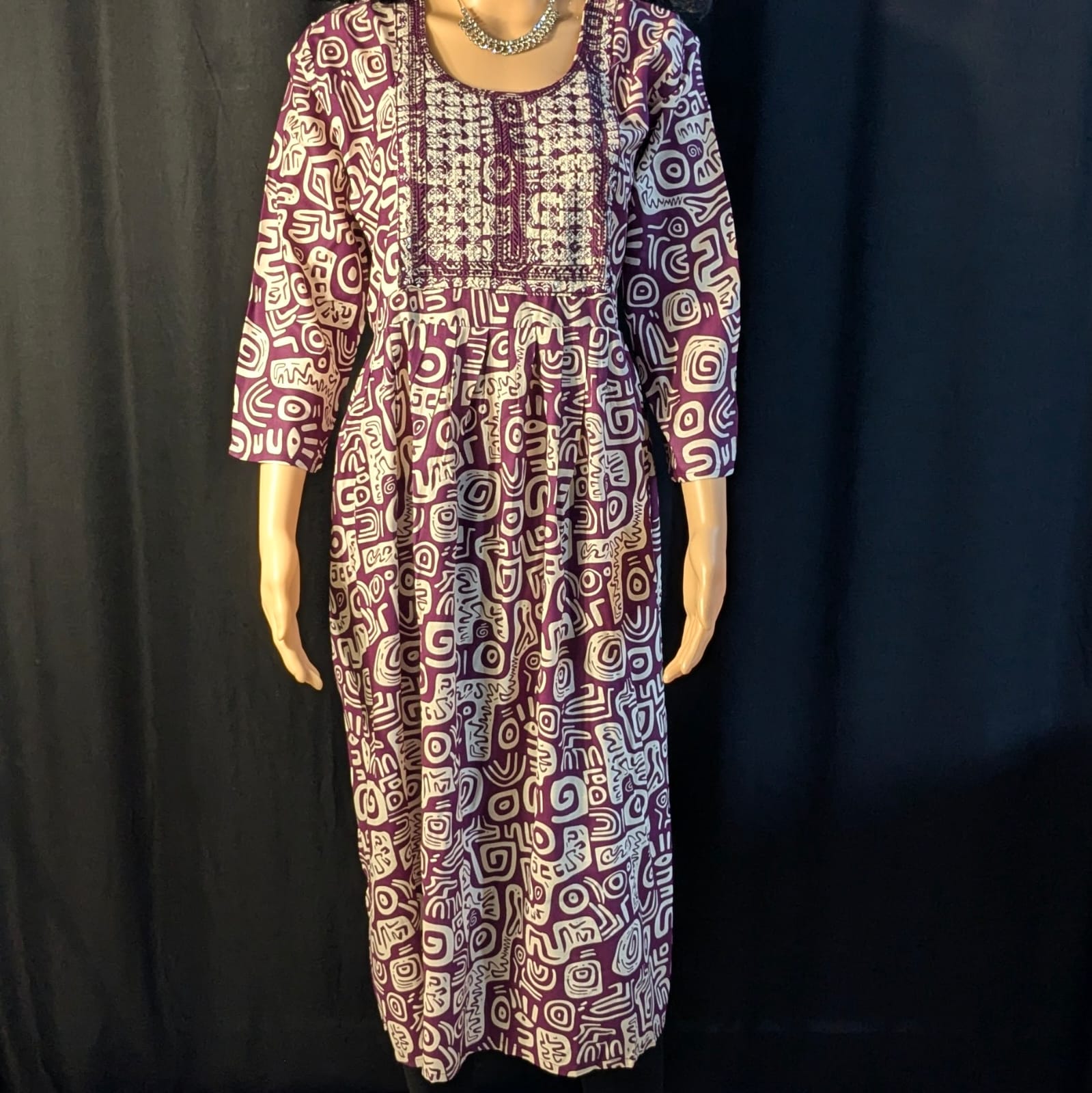 Accented with delicate white prints, this kurti creates a refreshing contrast against the rich violet base, enhancing its ethnic charm. A functional side pocket adds practicality, while the 3/4th sleeves provide comfortable coverage for all seasons. Pair it effortlessly with leggings, palazzos, or churidars for a stylish and relaxed ethnic ensemble.