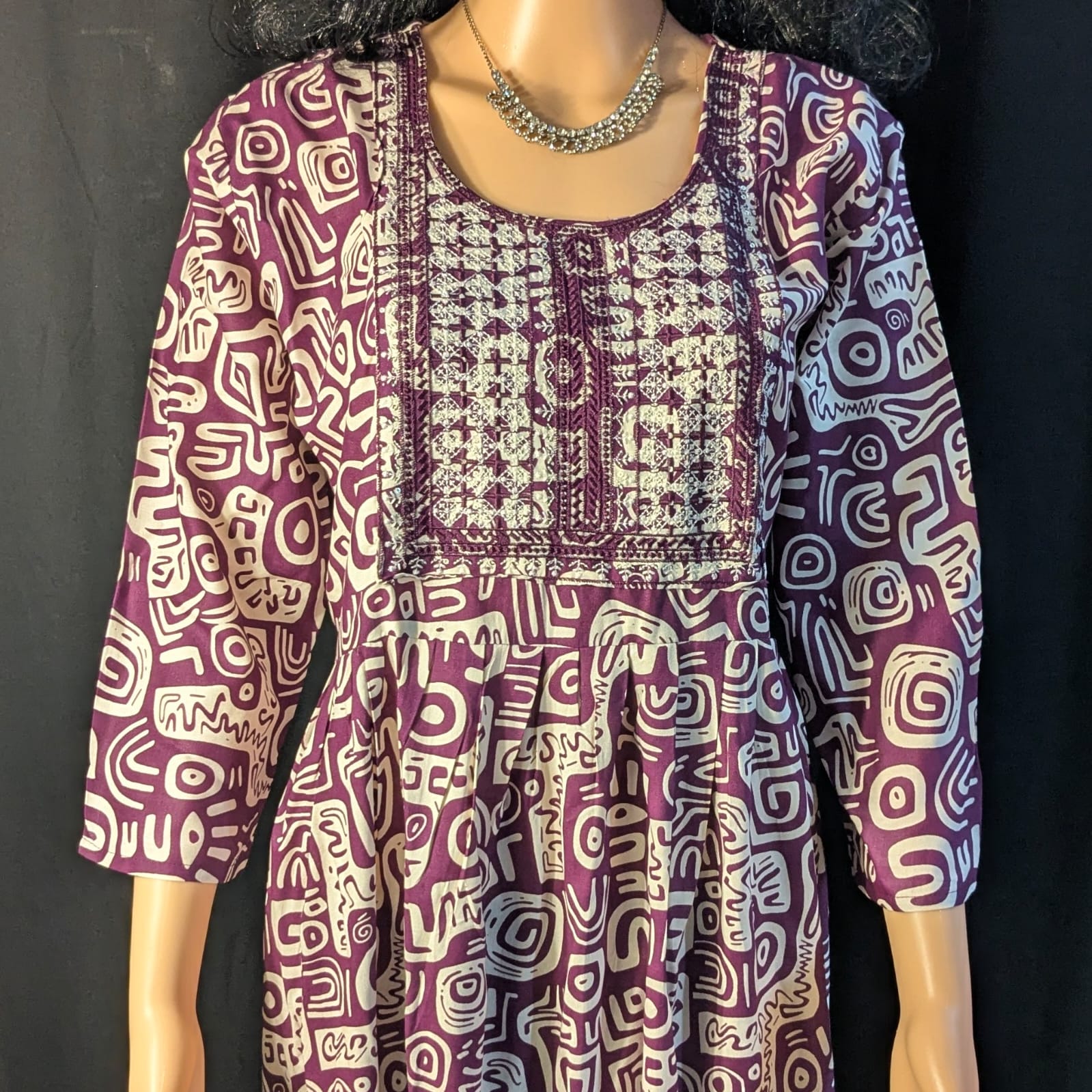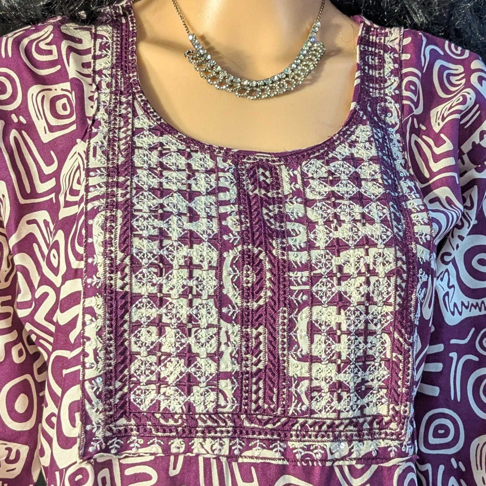 Add a graceful touch to your ethnic wardrobe with this violet umbrella kurti, designed to blend elegance with everyday comfort. Crafted from soft, breathable fabric, this kurti features a beautifully flared umbrella silhouette that offers a flattering drape and ease of movement. The simple neck design keeps the look minimal and versatile, making it suitable for office wear, casual outings, and daily use.