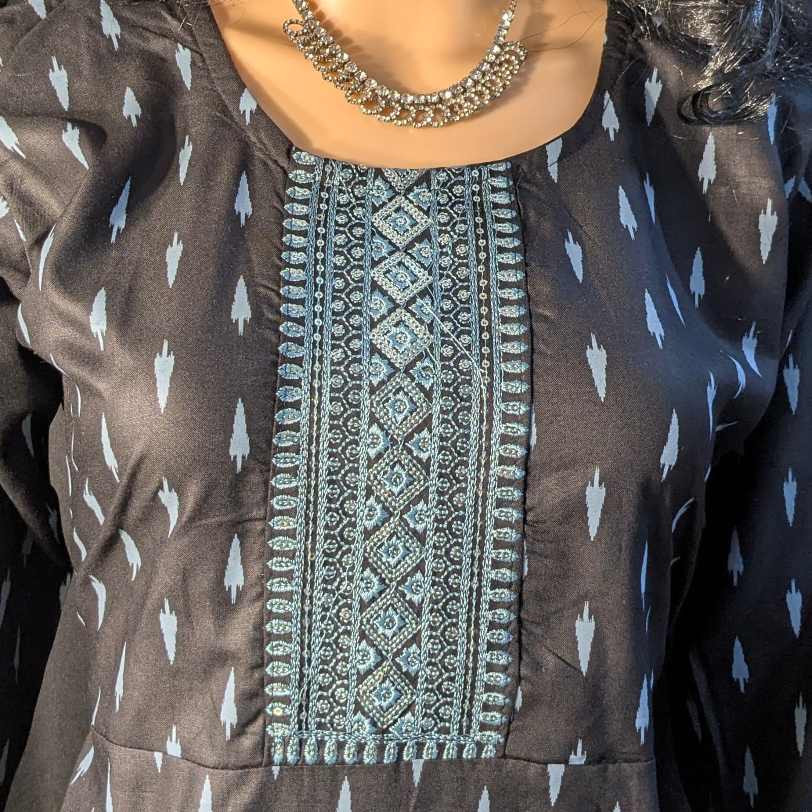 Step into effortless elegance with our Black Umbrella-Model Kurti, beautifully crafted from premium rayon fabric for all-day comfort and a graceful flow. This kurti features a flattering umbrella silhouette that enhances your natural shape while offering a soft, airy drape. The elegant neck design adds a refined touch, making it suitable for both daily wear and special occasions.