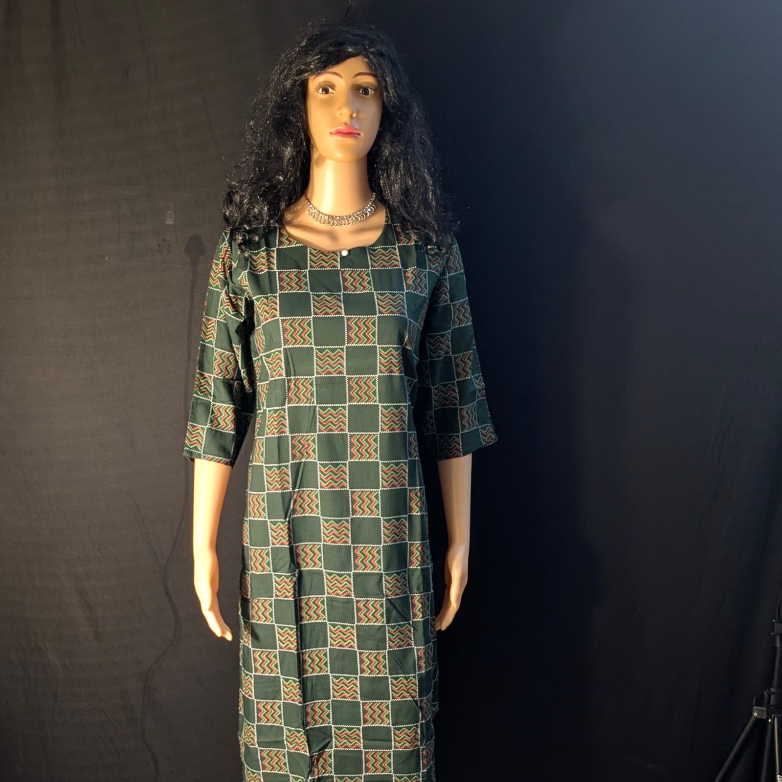 Step into effortless elegance with this Dark Green Capsule Model Kurti, designed to blend comfort with sophistication. Crafted from premium-quality fabric, this kurti features intricate printed designs that add a touch of charm to its rich green base. The straight-cut silhouette flatters every body type, while the simple neckline and 3/4th sleeves offer a balanced mix of tradition and modern appeal. Perfect for everyday wear, office looks, or casual gatherings, this kurti pairs beautifully with jeans, leggings, or palazzos for a versatile ethnic style.