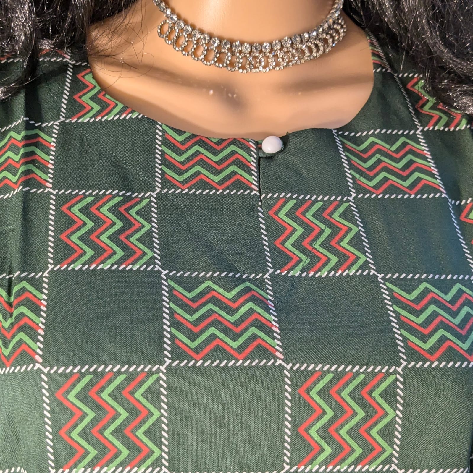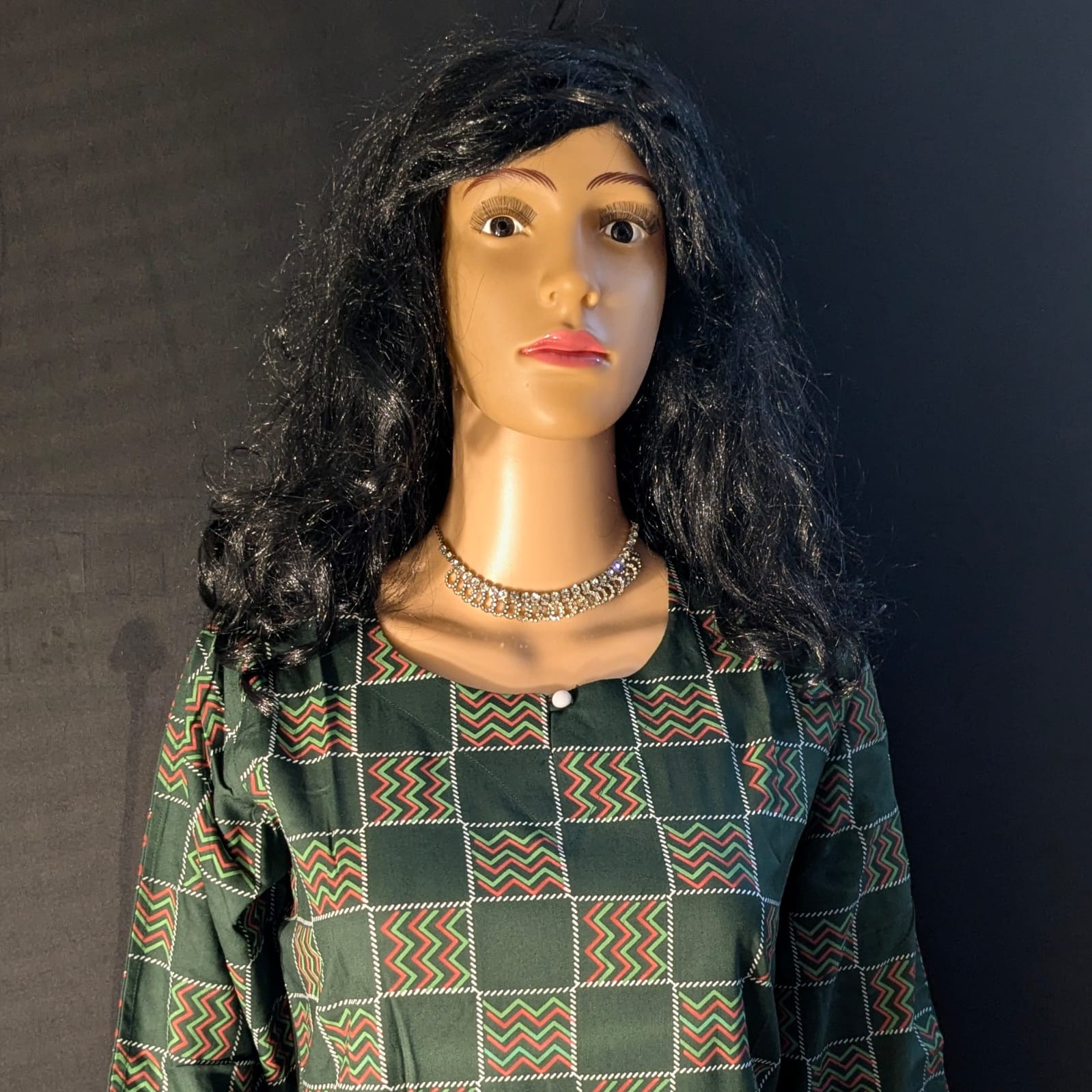 Elegant dark green color with all-over printed design.
