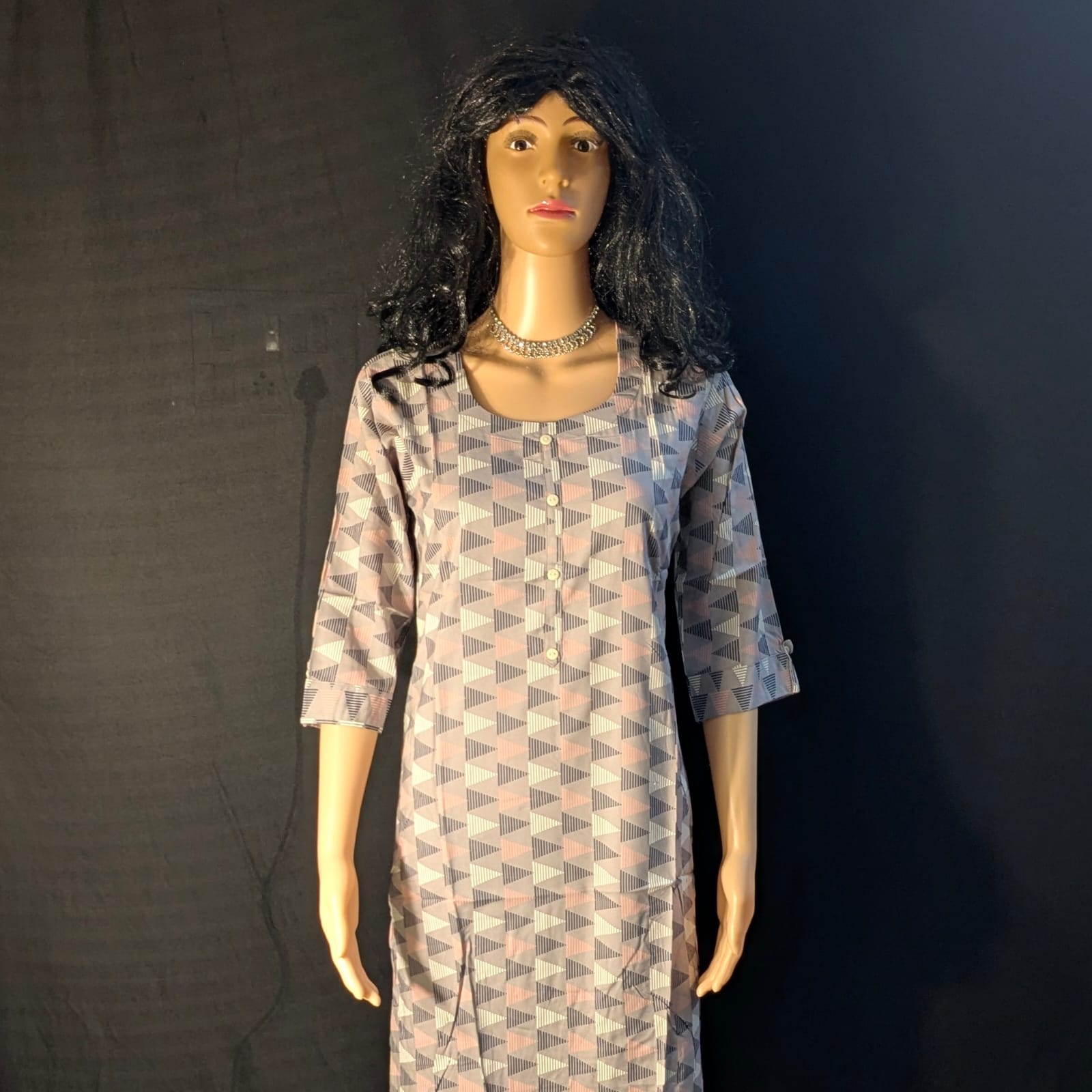 Elevate your everyday fashion with this Light Grey Capsule Model Kurti, designed for women who love comfort with contemporary style. Crafted from high-quality fabric, this straight-cut kurti features small triangle prints that add a touch of minimal elegance. The light grey shade gives it a subtle yet classy appeal, making it suitable for both office wear and casual outings. The breathable material ensures all-day comfort, while the simple design keeps it effortlessly stylish. Pair this kurti with jeans or leggings for a chic and modern ethnic look.
