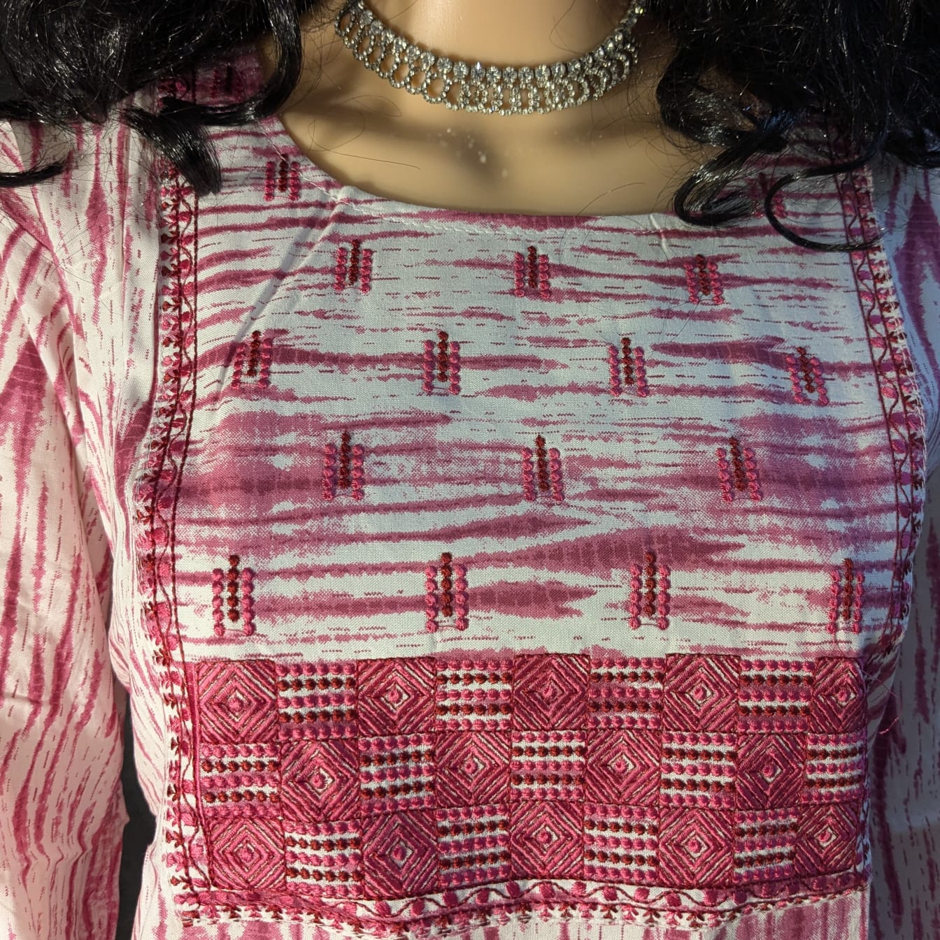 Embrace effortless elegance with this Pink and White Capsule Model Kurti, designed for women who appreciate subtlety and comfort. The kurti features a soothing blend of pink and white tones, enhanced with a simple yet chic design that adds a touch of sophistication to your look. Its straight-cut silhouette flatters all body types, making it a versatile addition to your ethnic and fusion wardrobe. Perfect for daily wear, office wear, or casual outings, this kurti pairs gracefully with jeans, leggings, or palazzos for a modern, stylish appearance.