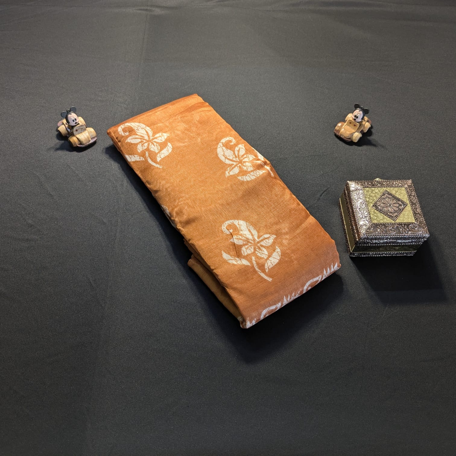 Orange Jute Saree with Elegant Design | Office & Casual Wear Saree with Blouse