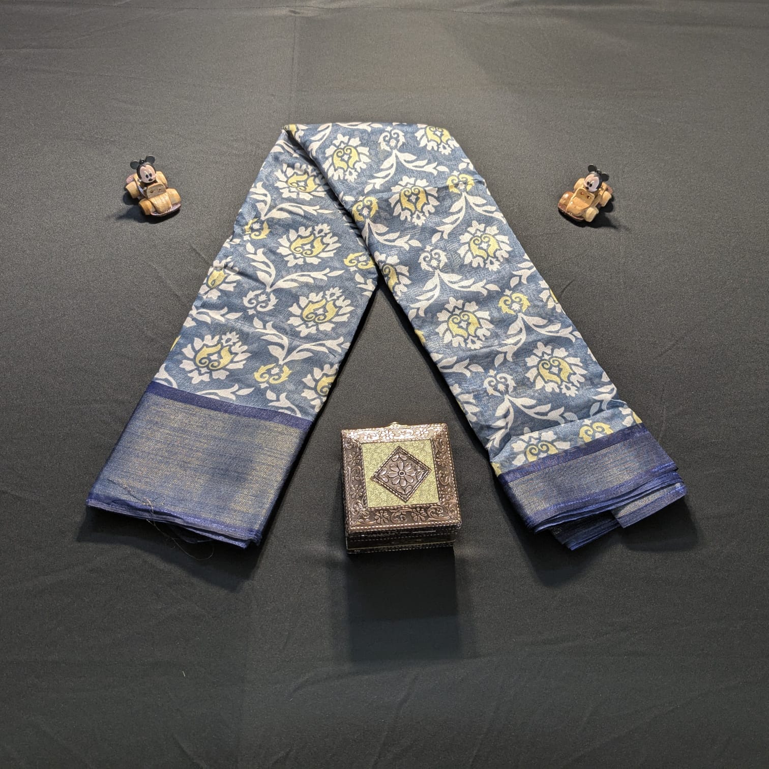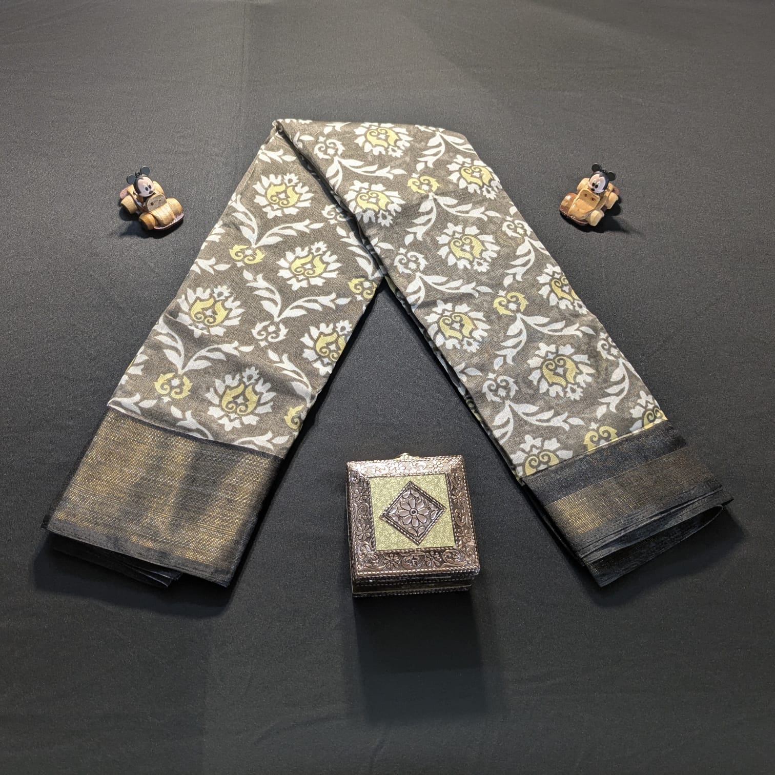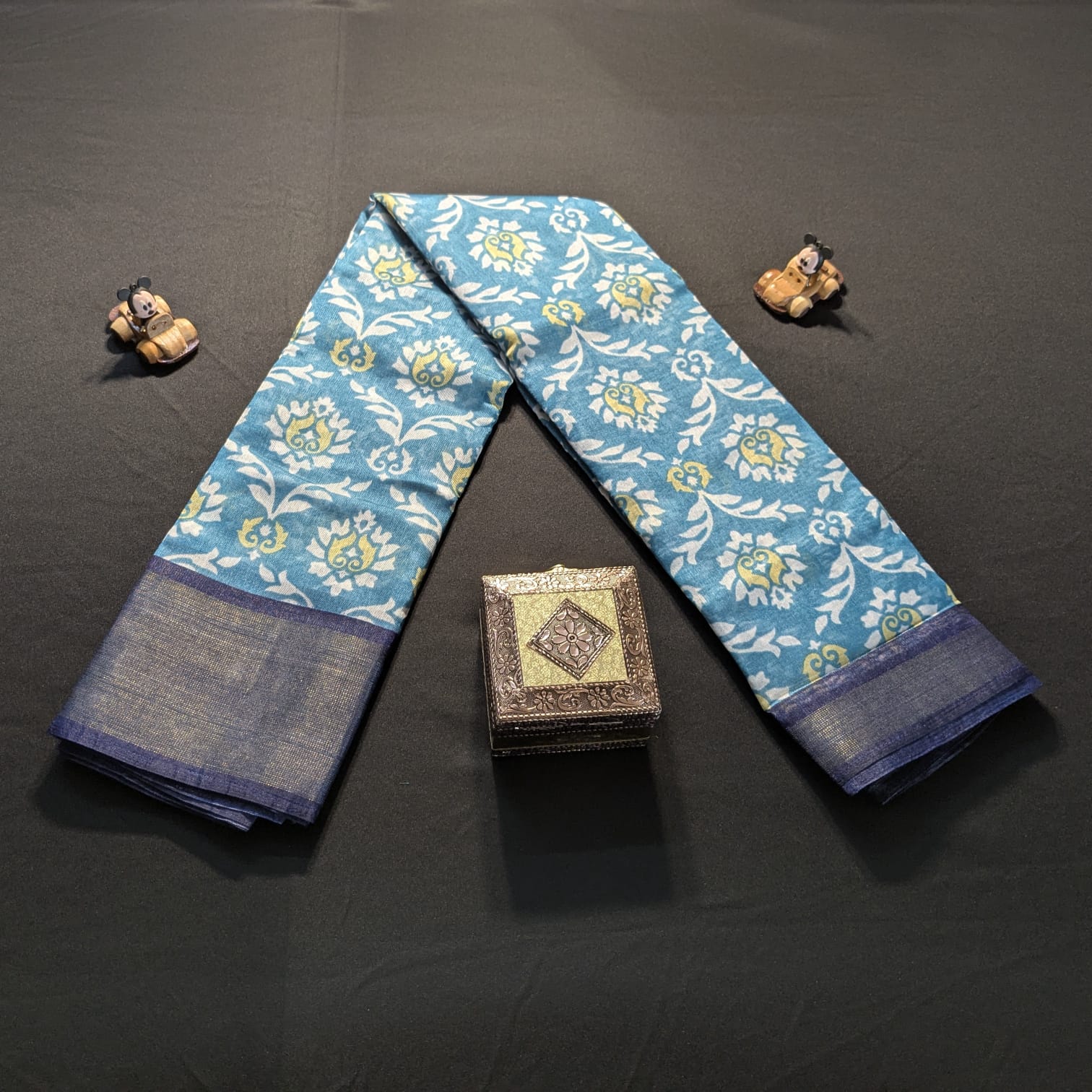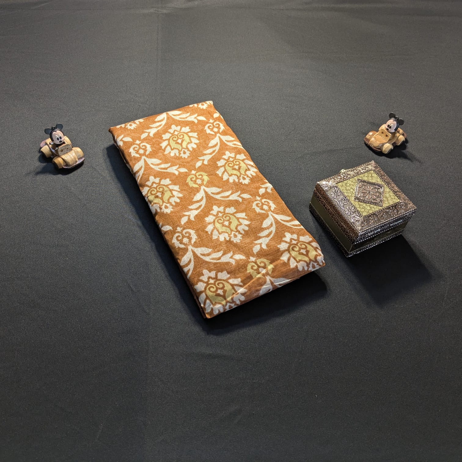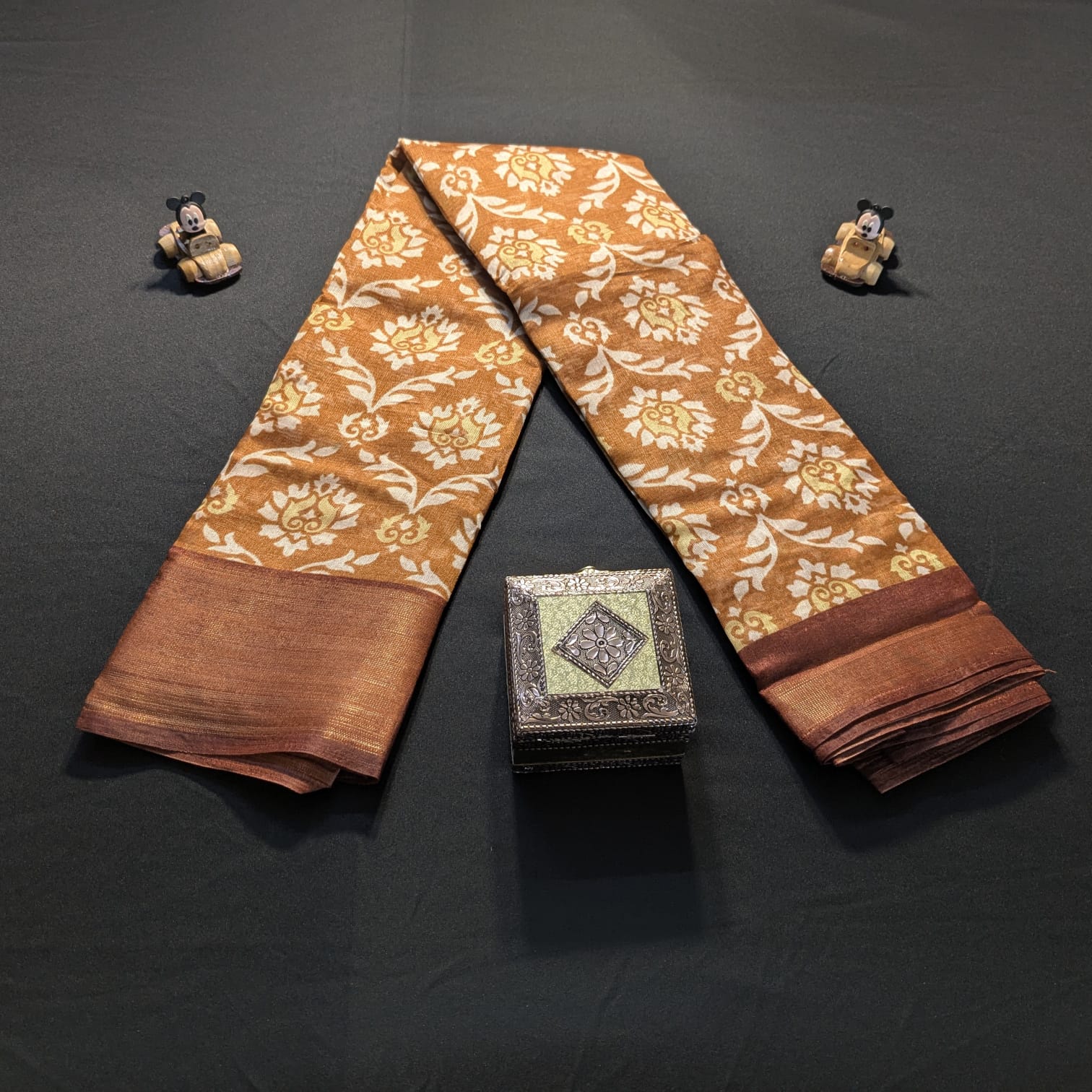 Bring a touch of elegance to your wardrobe with this vibrant jute saree, adorned with unique leaf designs and a luxurious golden border. Crafted from premium quality jute fabric, this saree is lightweight, breathable, and comfortable, making it perfect for office wear, casual outings, and semi-formal occasions.
