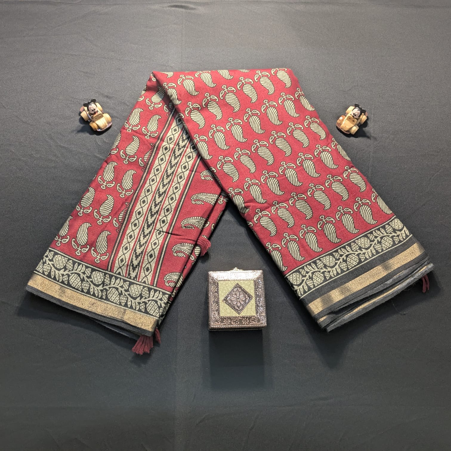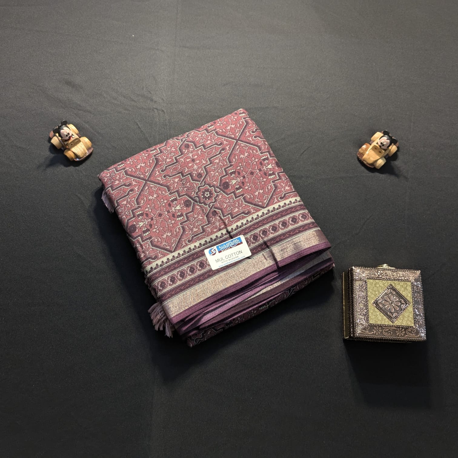 Elevate your ethnic wardrobe with this vibrant mul cotton saree, featuring bold geometric patterns and unique design elements. Crafted from premium mul cotton fabric, this saree is lightweight, breathable, and comfortable, making it ideal for office wear, casual outings, and festive occasions.